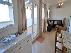 À l’intérieur, l’appartement a été rénové avec goût, avec une salle de bains récemment rénovée, la climatisation intégrale, et il est entièrement meublé, prêt à être emménagé. L’agencement bien pensé tire le meilleur parti de la lumière et de la vue, créant une atmosphère accueillante dans tout l’appartement.